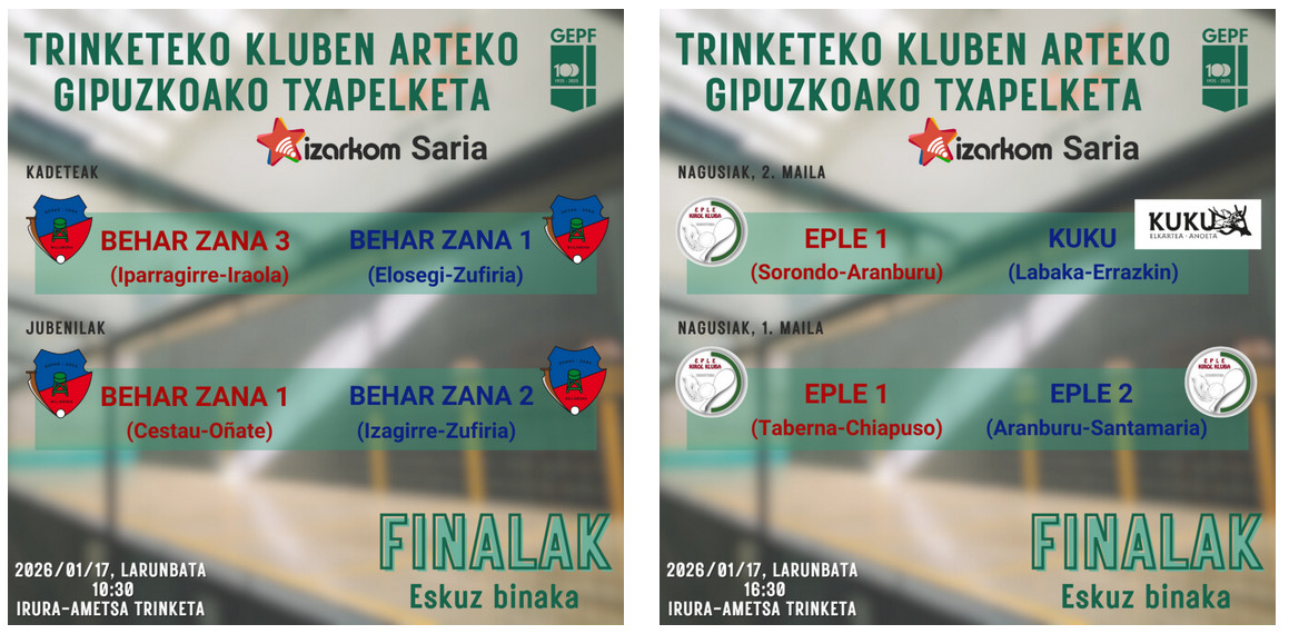 TRINKETEKO GIPUZKOAKO TXAPELKETA – ESKUZ BINAKAKO FINALAK – IZARKOM SARIA
