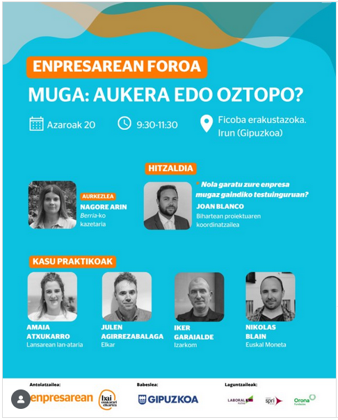 Azaroaren 20an #BaiEuskarari foroa ospatuko da Ficoban. "Muga: aukera edo oztopo?" lelopean, hainbat arlotako profesionalak bilduko ditu. Egitarauan, Joan Blanco @BIHARTEAN-eko koordinatzailearen hitzaldia eta kasu praktikoak: @lansarean, @elkar, @izarkom eta […]